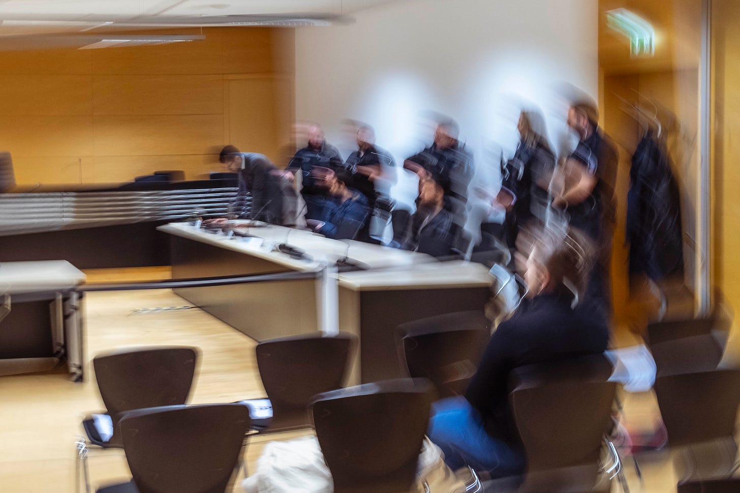 Auf der Anklagebank sind sie umgeben von ihren beiden Rechtsanwälten und einer Handvoll Justiz- und Polizeibeamter. Zwischen ihnen sitzt ein Dolmetscher, der für sie Sachen, die sie nicht verstehen, auf Farsi übersetzt.