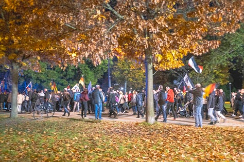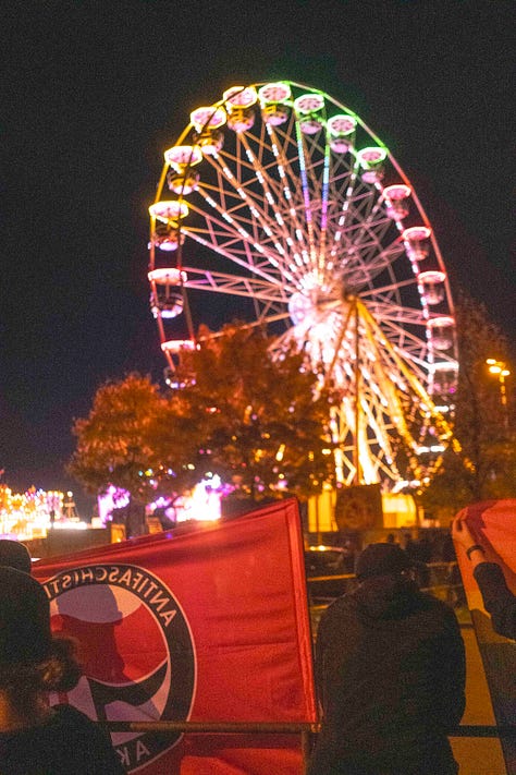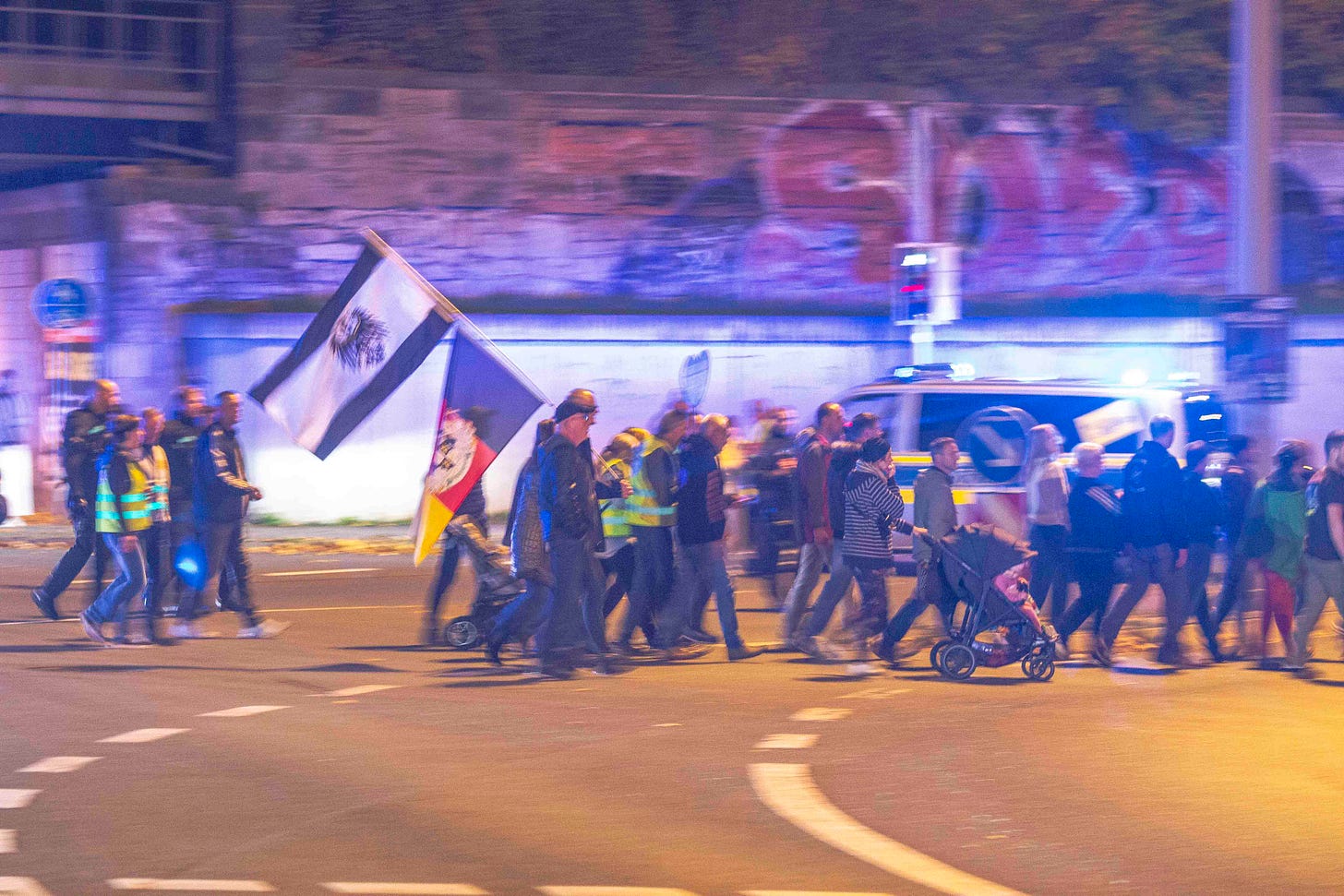 Die wöchentliche rechte Montagsdemo konnte am vergangenen Montag nicht wie sonst laufen. Zwei antifaschistische Kundgebungen sowie das Herbstvolksfest und die Polizei schränkten sie ein.